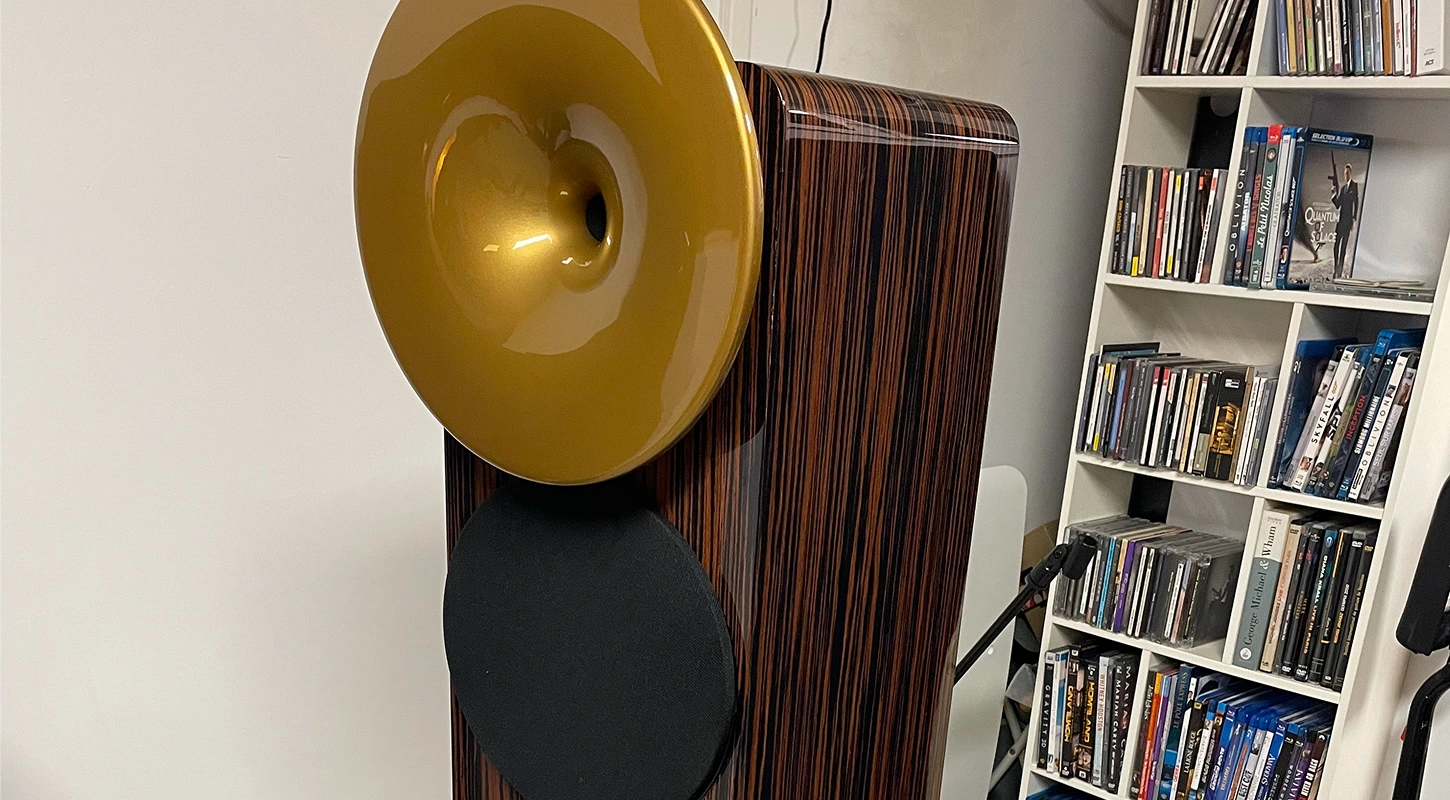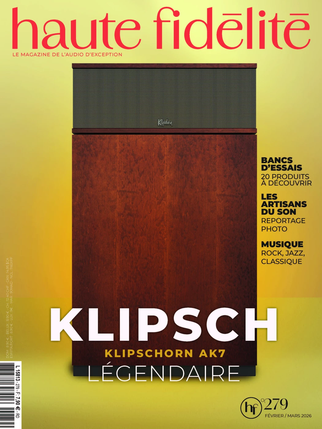 La couverture disponible en kiosque rend hommage à un monument de l’audio américain : la Klipsch Klipschorn AK7, enceinte mythique.
