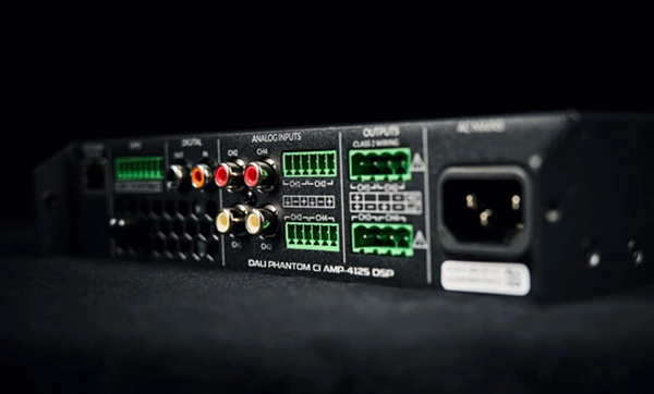 L’un des atouts majeurs du Phantom CI AMP-4125 DSP réside dans son processeur de traitement numérique du signal intégré. Celui-ci permet d’ajuster précisément chaque canal via des réglages de coupure, de délai, d’égalisation paramétrique et de dynamique. Des préréglages sont disponibles pour les enceintes Dali CI, simplifiant le travail de calibration.