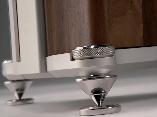 La Didascalìa repose sur des pointes de découplage intégrant des éléments en élastomère, destinés à contrôler les vibrations et à stabiliser l’image stéréo, notamment dans le registre grave.