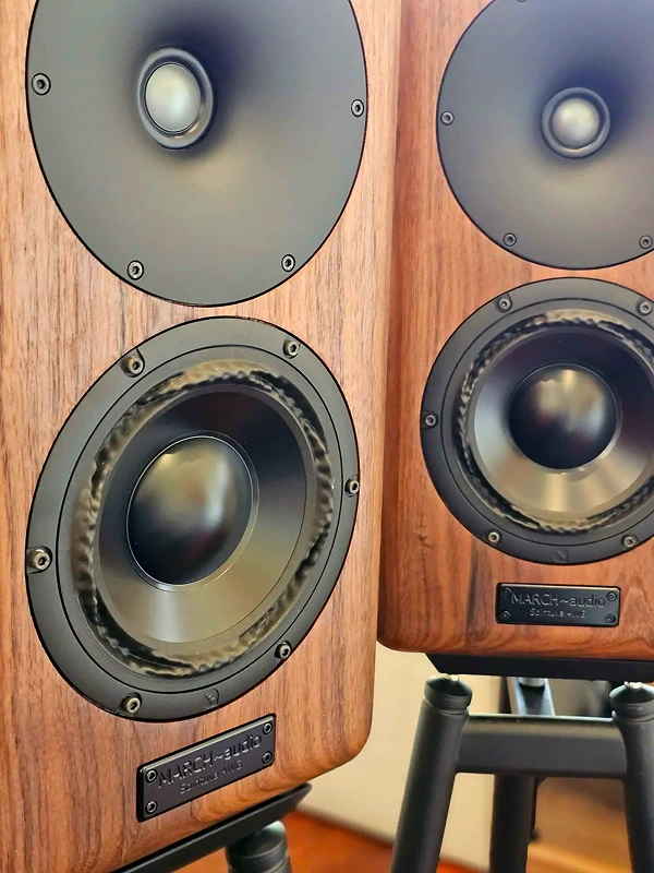 La Kuoro AWG s’inscrit dans une approche très technique propre à March Audio. Le constructeur s’appuie ici sur des haut-parleurs Purifi, réputés pour leur très faible distorsion et leur capacité à maintenir une grande linéarité, même à fort niveau.
