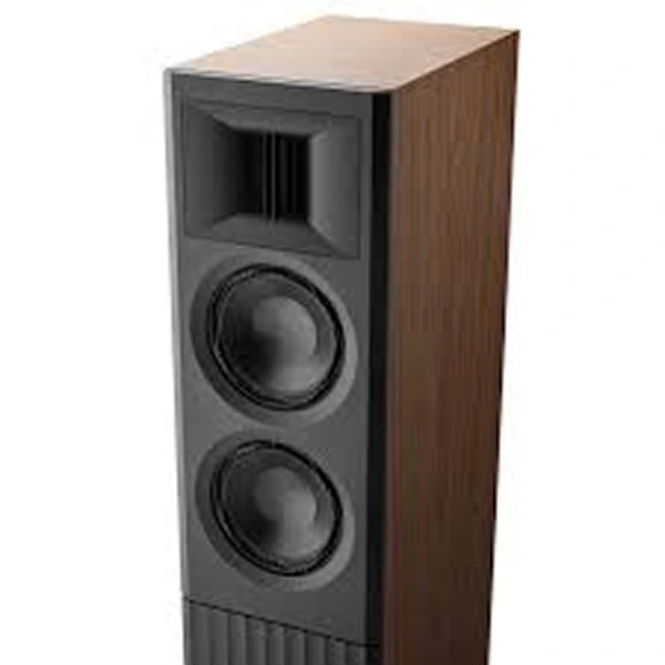 Un guide d’ondes vertical à cinq lames, développé par Purifi, assure la cohérence entre les registres. Il contrôle la directivité autour de la fréquence de coupure et élargit la diffusion horizontale dans les aigus.