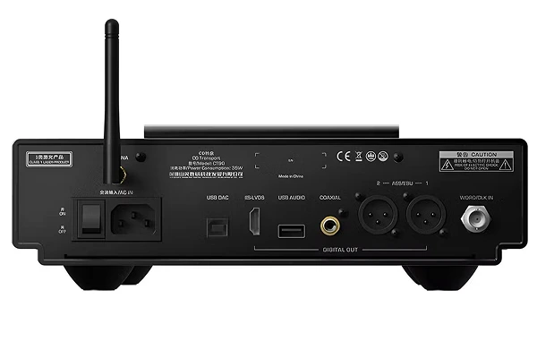 Plus remarquable encore, Shanling intègre une entrée d’horloge externe compatible 44,1 kHz et 10 MHz. Cette fonction permet de synchroniser le transport à une masterclock externe, une pratique issue du monde professionnel et des systèmes audiophiles de très haut niveau, visant à réduire le jitter et à stabiliser l’ensemble de la chaîne numérique.