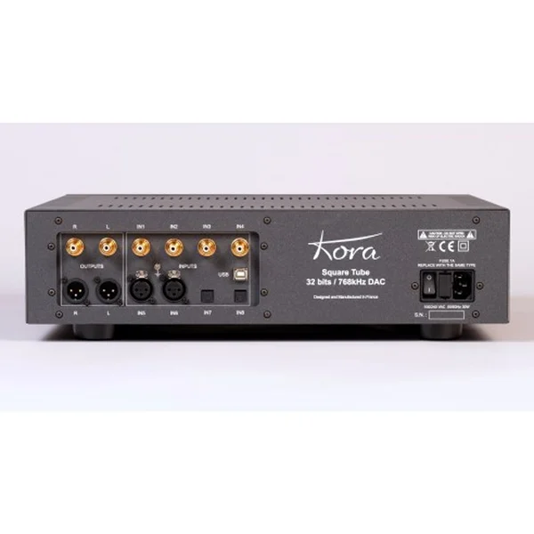 Le dispositif propriétaire Square Tube est bien sûr présent, constituant un amplificateur opérationnel complet, mais à tube. Il combine par canal une double triode ECC83 en différentiel d’entrée et une ECC82 en push-pull OTL de sortie, avec un courant imposé à 2 mA, qui ne varie pas afin de garantir un fonctionnement identique et stable. L’essentiel est de constater le résultat musical de ces choix bien réfléchis, qui démontrent que Kora maîtrise sacrément bien son sujet.