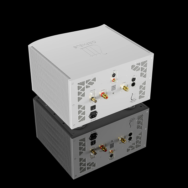 La haute façade de l’Orpheus Lab usinée dans la masse, sans aucune vis apparente, est facilement reconnaissable grâce à sa forme incurvée tel un instrument, où la lyre s’illumine de blanc une fois l’amplificateur en marche. Il faudra de la place pour accueillir les deux blocs monophoniques d’un poids de 56 kg chacun. Ils constituent le dernier ajout à la ligne Heritage, qui se compose également du somptueux préamplificateur H Two 33BD, doté de son alimentation séparée H Five DI, tout comme le lecteur CD/SACD H Zero PS, que nous avons eu la chance d’apprécier en même temps que les blocs M800. Inutile de préciser que cette combinaison atteint des sommets de musicalité, sans conteste parmi l’élite actuelle des transistors.