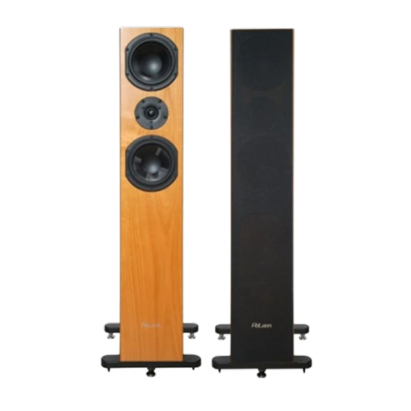 Le tweeter, équipé d’une membrane textile, recourt à une suspension large et souple. Le dôme ultraléger garantit une réponse en fréquence très étendue et d’une grande linéarité, jusqu’à 28 kHz. La bobine mobile en fil d’aluminium est entourée par un circuit magnétique puissant, tout cela à l’avantage des harmoniques supérieurs, d’une grande richesse, d’ailleurs perceptible. Les deux transducteurs médium/grave de 170 mm utilisent une membrane à cône convexe en polypropylène/carbone pour l’un, et en fibre de cellulose de verre enduite pour l’autre. Ces deux formules préservent un excellent amortissement interne. Au cache-noyau s’ajoute une bobine mobile montée sur support Kapton, assortie d’une bague en cuivre, afin de limiter la distorsion harmonique. Châssis en alliage amagnétique. Une grande attention a été portée à la disposition symétrique des haut-parleurs, cela en fonction des points d’émission et du choix précis de la fréquence de coupure. On parvient de la sorte à obtenir une image stéréo en trois dimensions.